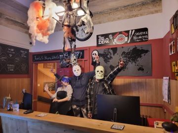 🎃 Pumpkin decorations & spooky design around the hostel