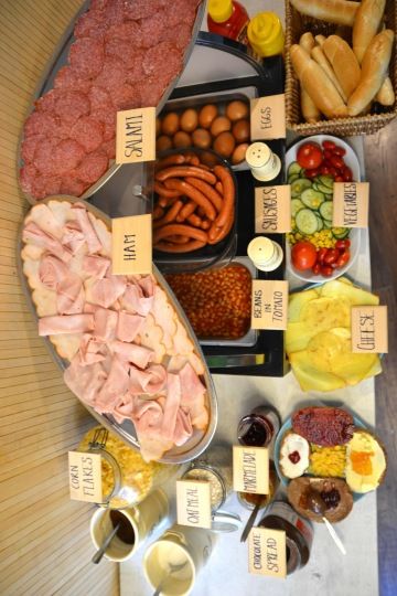 Our all-you-can-eat breakfast buffet is served from 08:00 to 10:30 (flexible for groups). It includes a variety of delicious sweet and savory options — sausages, eggs, baked beans, platters of cheeses, ham, salami, vegetables, and fresh bread rolls. For a lighter start, enjoy cereals (cornflakes, Chocapic, Cini Minis), yogurts, chocolate spread, and jams. Water, coffee, and a wide selection of teas are available 24/7.